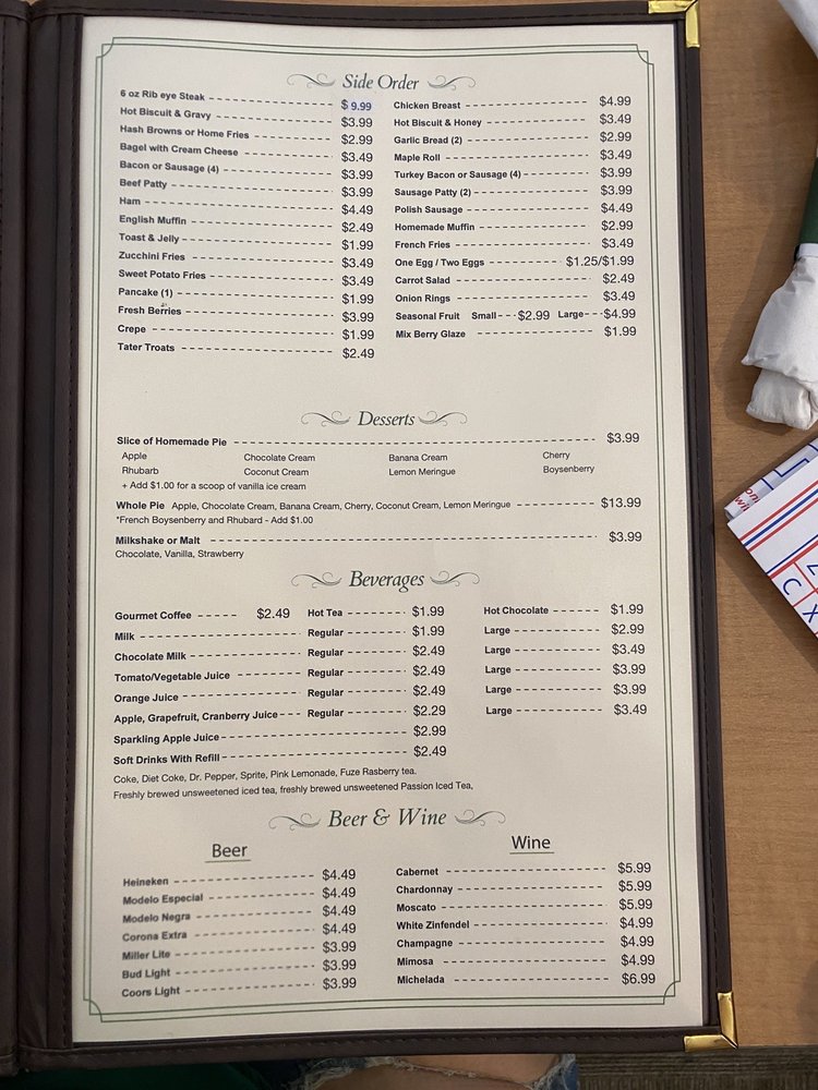 Polish sausage with a variety of egg styles. Choice of hash browns, home fries, fruit, and more. Sides include pancakes, crepe, toast, or muffin.