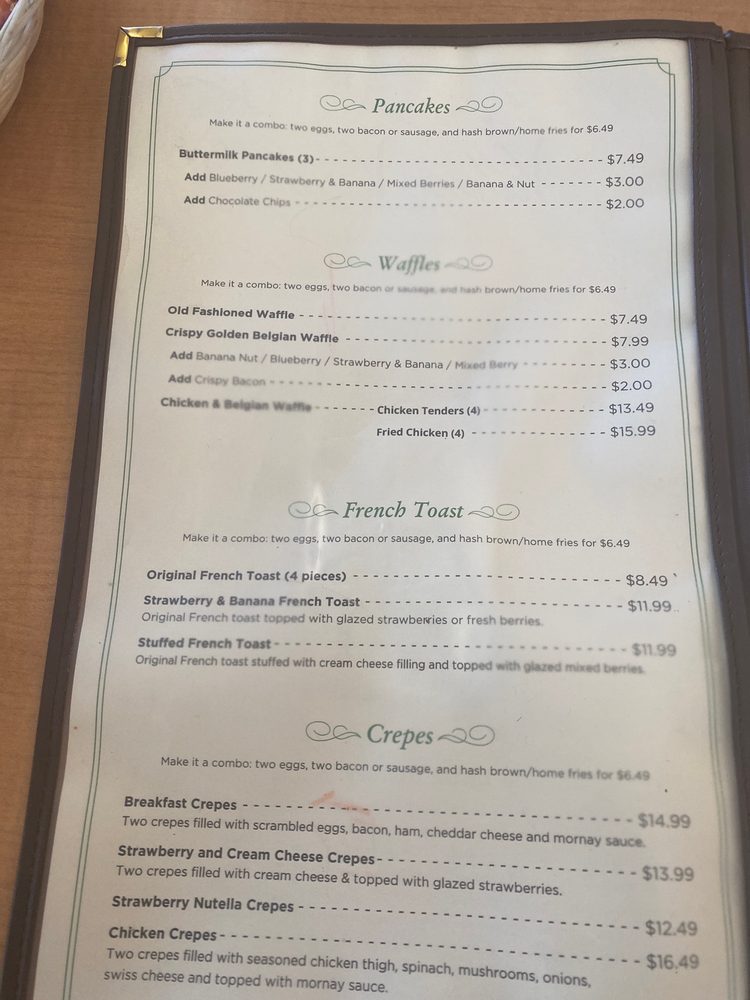 With a menu that features classic favorites like ribeye eggs and avocado, Belgian waffles, and renowned chicken crepes, each dish is expertly prepared, leaving patrons delighted. The café also embraces all dietary preferences, offering numerous vegan and vegetarian options.